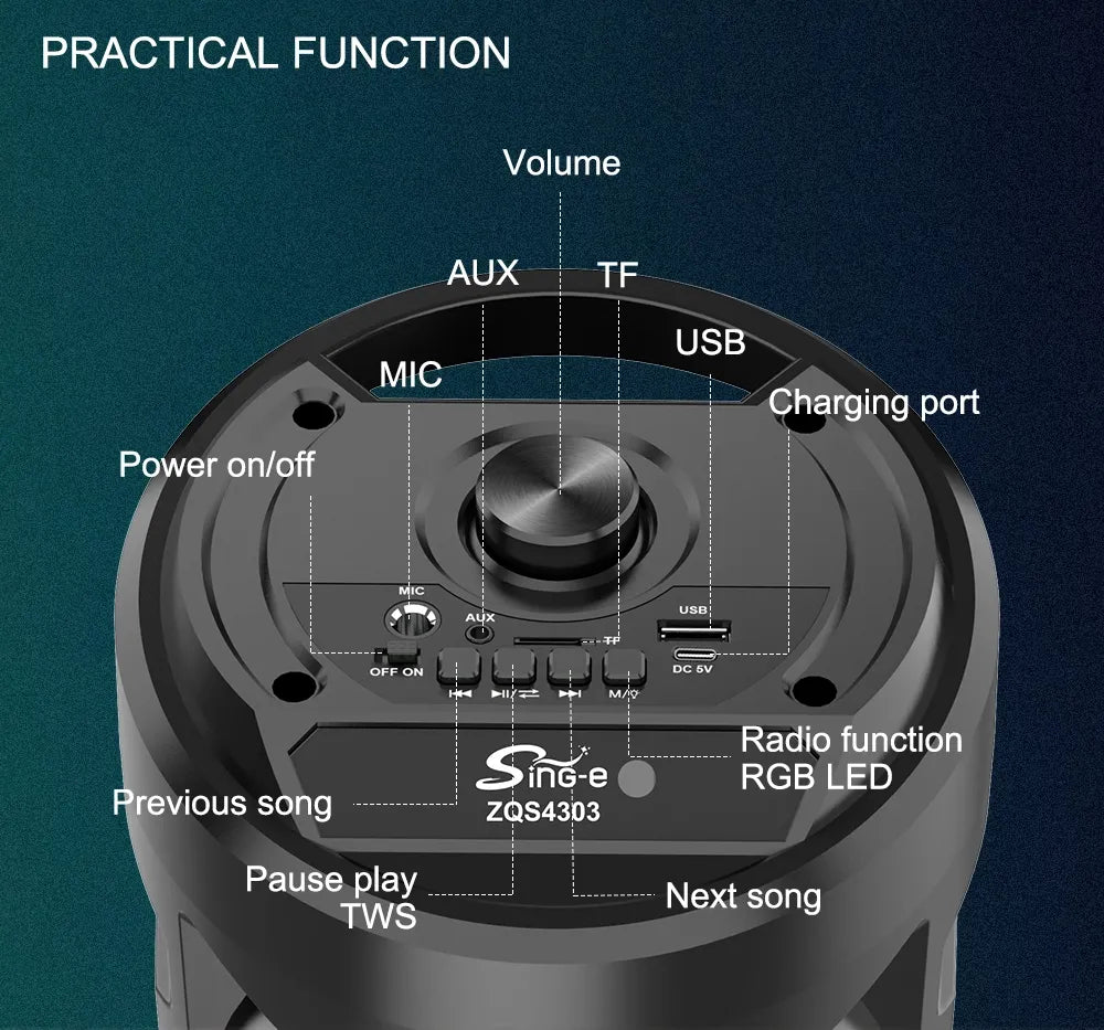 🔊 Sing-e ZQS4303 Bluetooth Speaker – Fuqi e Madhe, Tingull i Pasur & Portativ